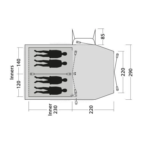 - Außenzelt und Innenzelt verfügen über Kabeldurchführungen