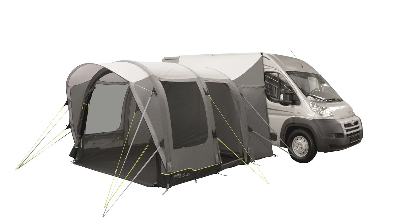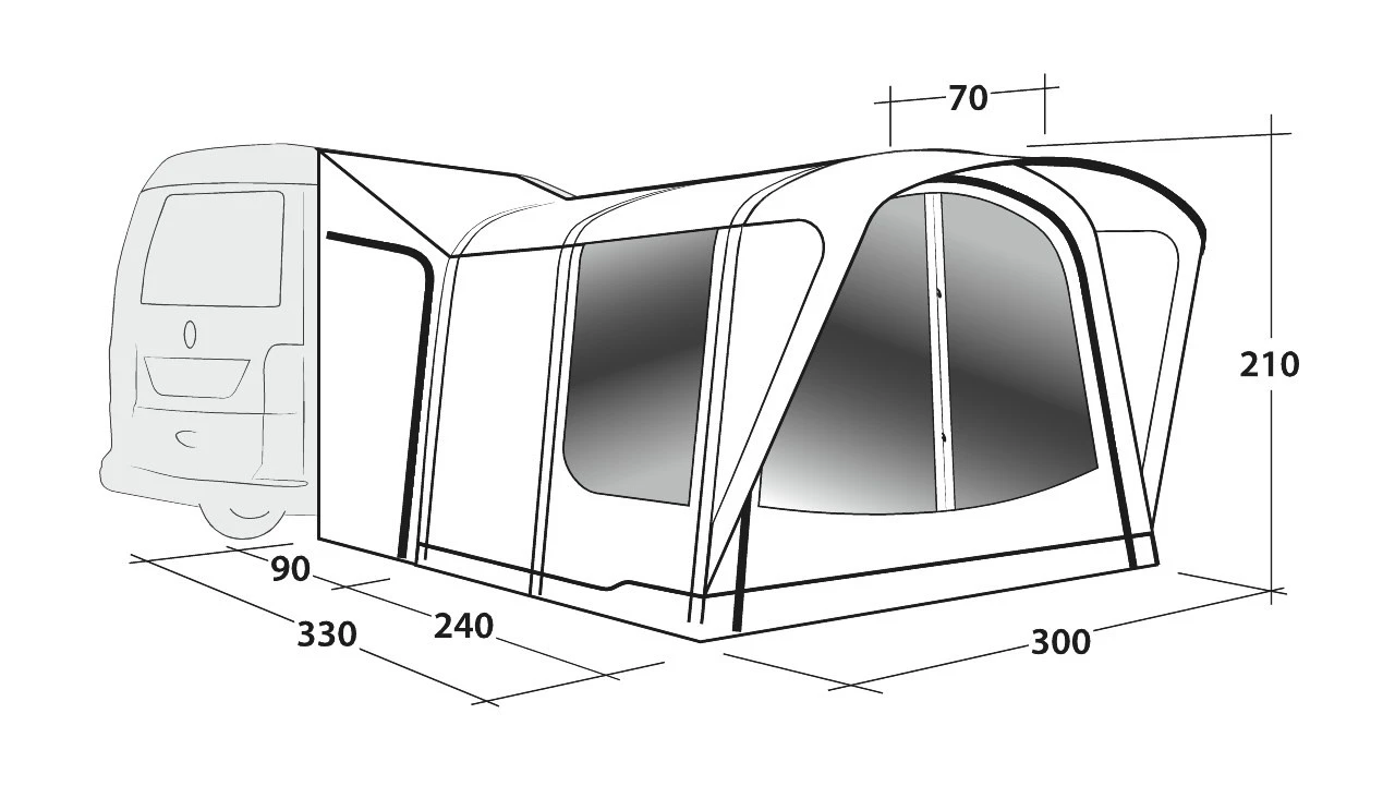 Das hohe Outwell Newburg 240 Air Tall Wohnmobilvorzelt lädt zum Verweilen und Entspannen ein. Innerhalb weniger Minuten ist das Luft-Vorzelt an Dein Fahrzeug mit einer Anschlusshöhe von 175 – 200 cm angebracht und aufgebaut. Durch die vollstänig offene Rückseite des Zeltes gelangst du problemlos zu deinem Fahrzeug. Es wurde mit großen, getönten Fenstern ausgestattet, welche problemlos mit Gardinen verschlossen werden können und Dich somit vor neugierigen Blicken schützen. Die Fronttür wurde mit einem Moskitonetz ausgestattet, welches Dich vor lästigen Insekten schützt und dir eine angenehme Belüftung ermöglicht. Ein integriertes Vordach schützt den Innenraum vor Regen, solltest Du die Tür Deines Newburg 240 Air Tall zum Lüften geöffnet lassen. Bei sonnigem Wetter findest Du hier ein kleines schattiges Plätzchen. Damit Dein Zelt ein wenig wohnlicher wird, verfügt das Zelt über das HookTrackSystem. Dieses System bietet Dir vielseitige Möglichkeit Gegenstände oder Lampen aufzuhängen. Der Tunnel wurde mit zwei Türen und Moskitonetz ausgestattet. Doppelt angebrachte Keder (Stärke 5 mm) sorgen dafür, dass Du Dein Fahrzeug ohne Probleme anbringen kannst. Ein abgedunkelte Schlafkabine ist optional erhältlich.