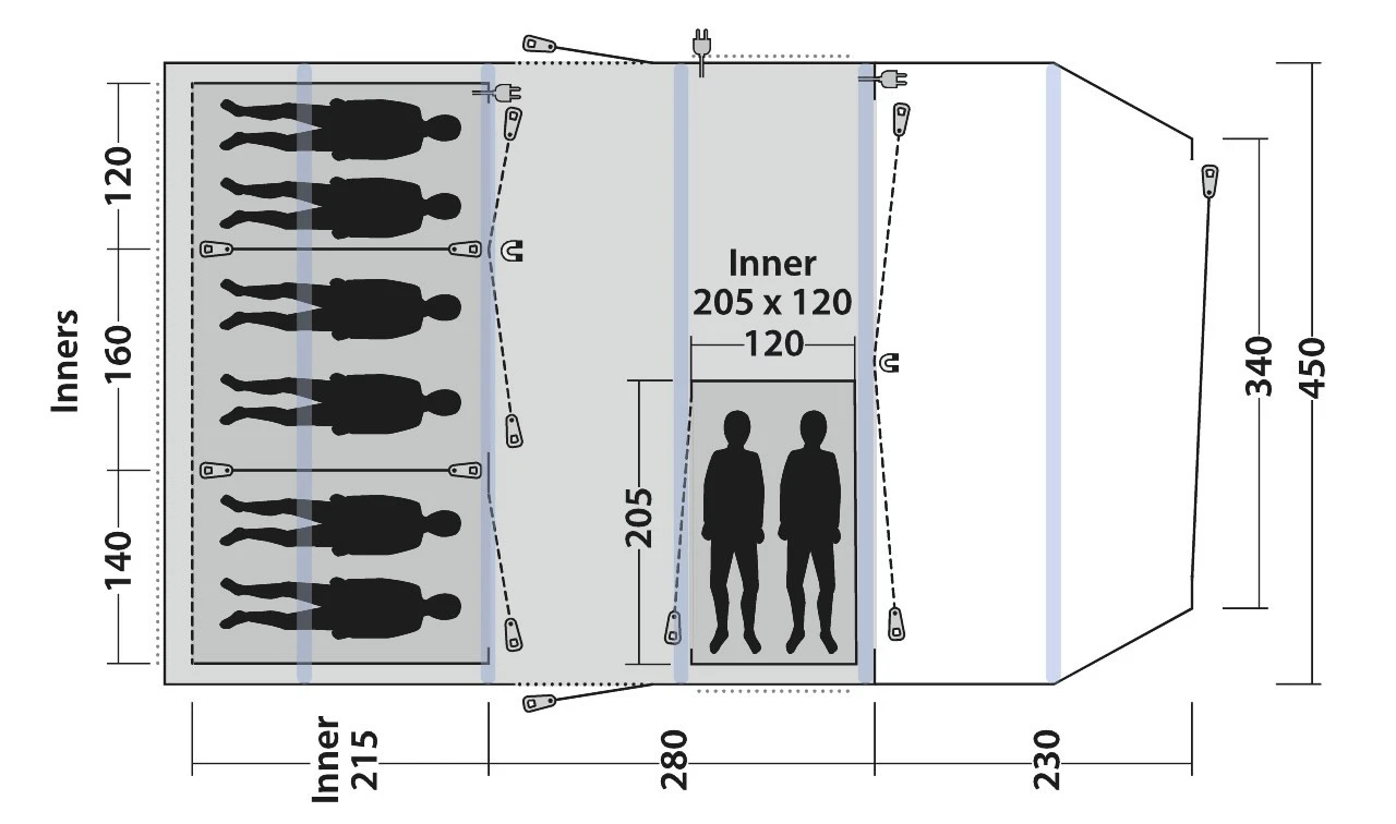 - Außenzelt und Innenzelt verfügen über Kabeleinführungen