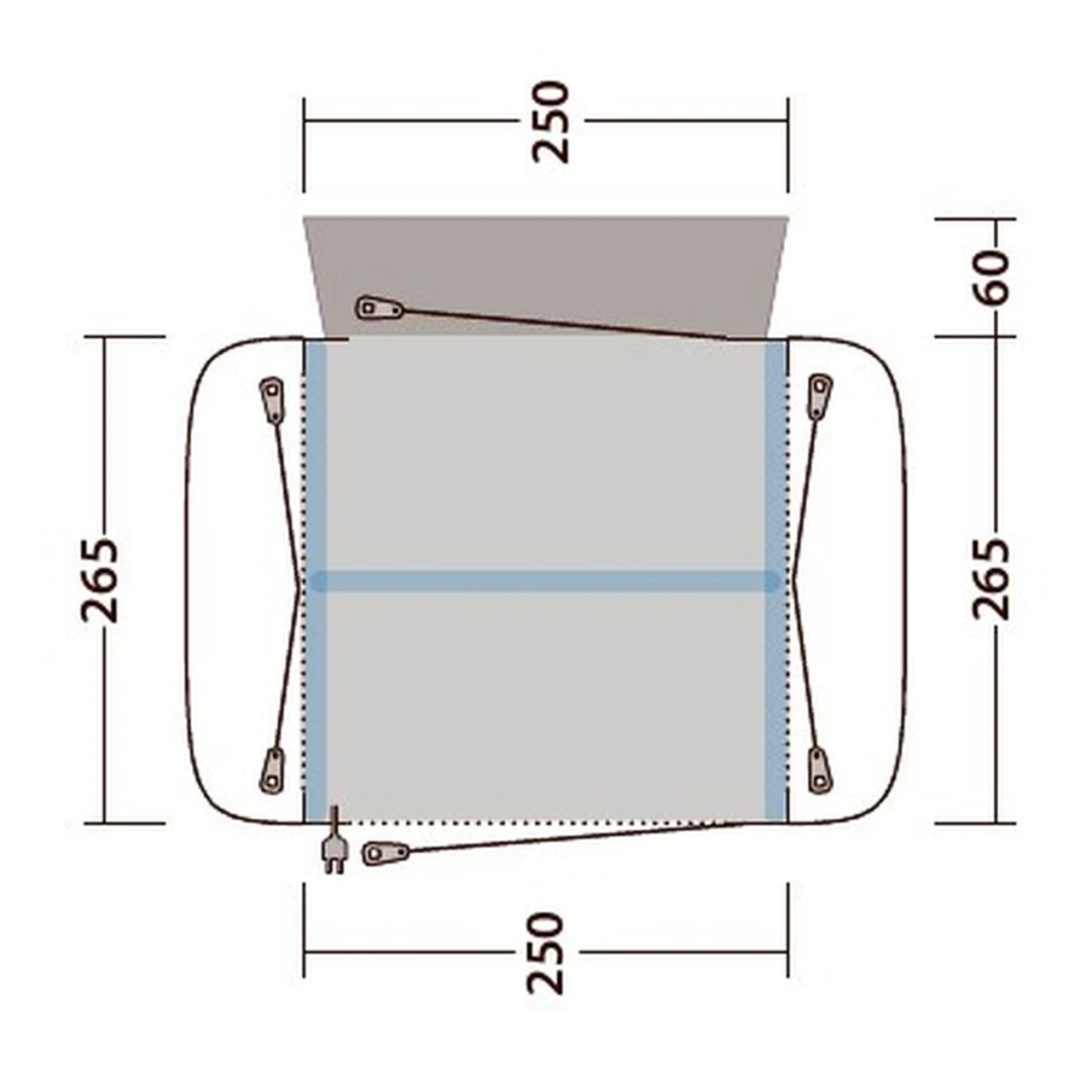 Das Outwell Crossville 250SA ist ein Busvorzelt, was parallel zum Bus steht. Es ist symmetrisch aufgebaut, was bedeutet, dass es an Vorder- und Rückseite je eine große Tür mit einem kleinen Schutzdach gibt. Die Vier-Schieber-Reißverschlüsse ermöglichen es, dass die Türen entweder halb oder ganz geöffnet werden können oder dass du nur die Tür wegrollst und die das dahinterliegende Moskitonetz als Schutz vor Insekten stehen lässt. Die zusätzliche Seitentür hat ebenfalls ein Moskitonetz hinter der Wand. Alle drei Türen können komplett weggerollt werden, so dass du einen optimalen Shelter für Feiern bei schönem Wetter hast. Das extra robuste Rip-Stop Material sowie die 6000 mm Wassersäule sorgen dafür, dass du auch bei schlechtem Wetter absolut geschützt in deinem Crossville 250SA bist. In der Schleuse, die durch 2 Türen betreten werden kann, sorgt die Bodenplane mit integriertem Zugluftstopper dafür, dass es im Zelt nicht zieht. Mit dem optional erhältlichen abgedunkelten Innenzelt kann zusätzlicher Schlafraum geschaffen werden. Damit dein Zelt ein noch wohnlicher wird, verfügt das Zelt über das HookTrackSystem. Dieses System bietet Dir vielseitige Möglichkeiten, Gegenstände oder Lampen aufzuhängen. Eine absolute Neuheit ist das Outwell Nightlight System.