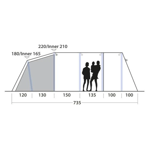 Das Outwell Wood Lake 6ATC Familienzelt ist ein riesiges Drei-Zonen-Luftzelt, dass deiner Familie problemlos Platz in eurem Urlaub bietet. Es ist dank des Rigid Air Systems innerhalb weniger Minuten aufgebaut und genauso schnell wieder abgebaut. Das robuste, technische Baumwoll-Mischgewebe sorgt mit seiner Atmungsaktivität für ein angenehmes Raumklima in warmen Sommern, aber auch an kälteren Tagen. Das Outwell Wood Lake 6ATC ist in einen Schlafbereich, einen Wohn- und einen sogenannten Nassbereich aufgeteilt. Der der Vorraum des Zeltes hat einen herausnehmbaren Boden. Wenn der Boden herausgenommen wird, schaffst du einen Nassbereich. Lässt du den Boden eingelegt, so erweiterst du deinen Wohnraum. Der Vorraum eignet sich ideal dazu, eine Küche aufzustellen, denn hier kannst du bei Wind und Wetter geschützt kochen. Die Tür lässt sich komplett öffnen, so dass du einen tollen Panoramablick genießen kannst.