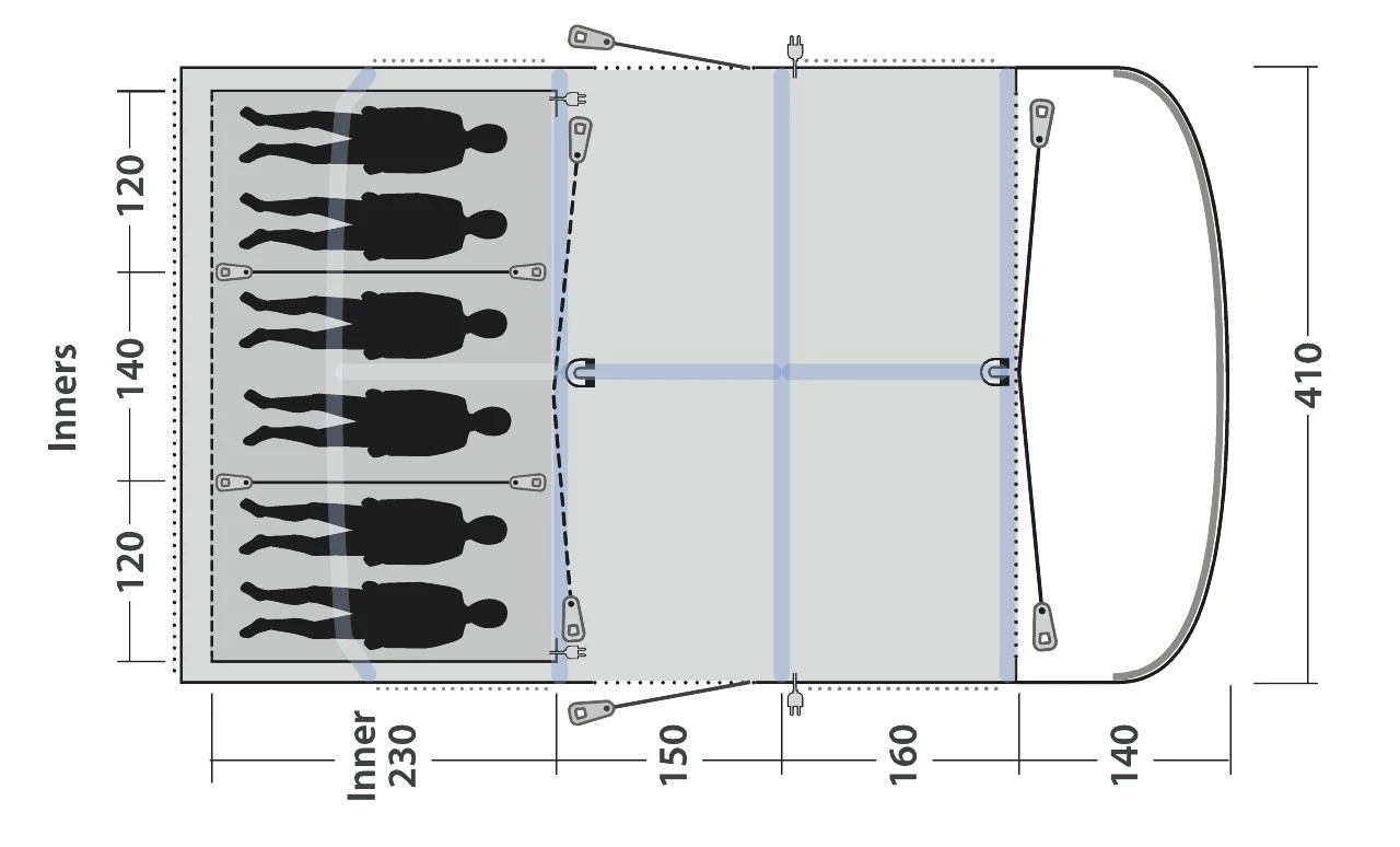 - Außenzelt und Innenzelt verfügen über Kabeleinführungen