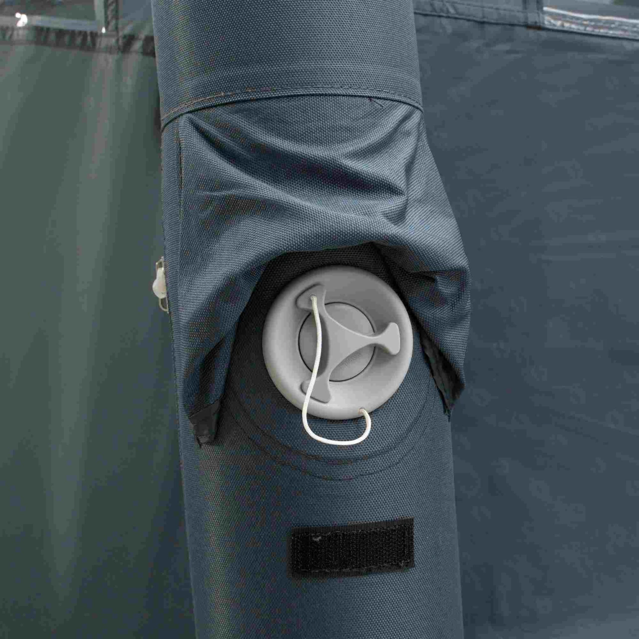 Für einen Campingurlaub mit der Familie oder mit Freunden ist das Outwell Starhill 6A eine gute Wahl. Die außen liegenden Luftkanäle sorgen für noch mehr Kopffreiheit im Inneren des Zeltes. Ein zweiter Eingang auf der Zeltrückseite ermöglicht es dir, direkt in die Schlafkabine zu gelangen oder diese zu verlassen, ohne durch den Wohnbereich zu gehen. Durch das Moskitonetz am 2. Eingang hast du zusätzlich noch die Möglichkeit der besseren Belüftung in der Schlafkabine. Das helle Dach über dem Wohnbereich schafft eine helle, freundliche Atmosphäre. Einen erholsameren Schlaf bekommst du in der abgedunkelten Premium Schlafkabine, die bei Bedarf auch in 3 separate Kabinen geteilt werden kann. Die Kabeldurchführungen ins Zelt sowie auch in die Schlafkabine ermöglichen es dir, Strom auch ins Innenzelt zu legen. Große, getönte Fenster im Wohnbereich können mit einem Vorhang verhängt werden, wenn ihr mehr Privatsphäre braucht. Das HookTrack-System im Starhill 6A schafft flexible Möglichkeiten, Lampen oder andere Dinge bis zu 1,5 kg aufzuhängen.