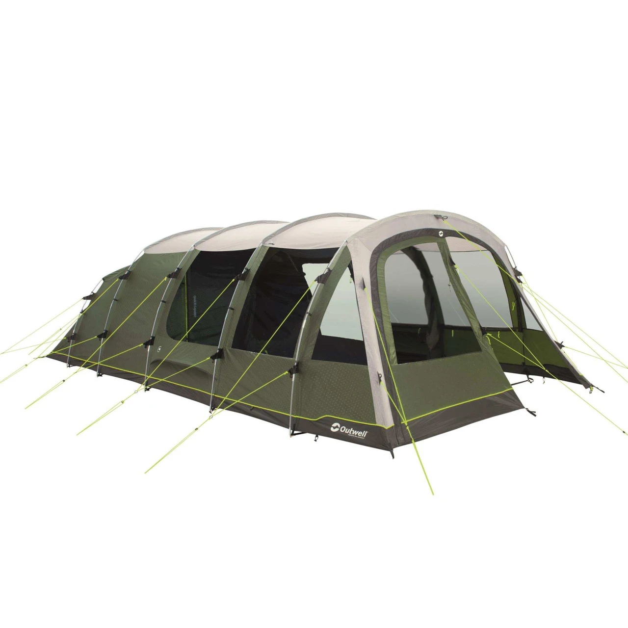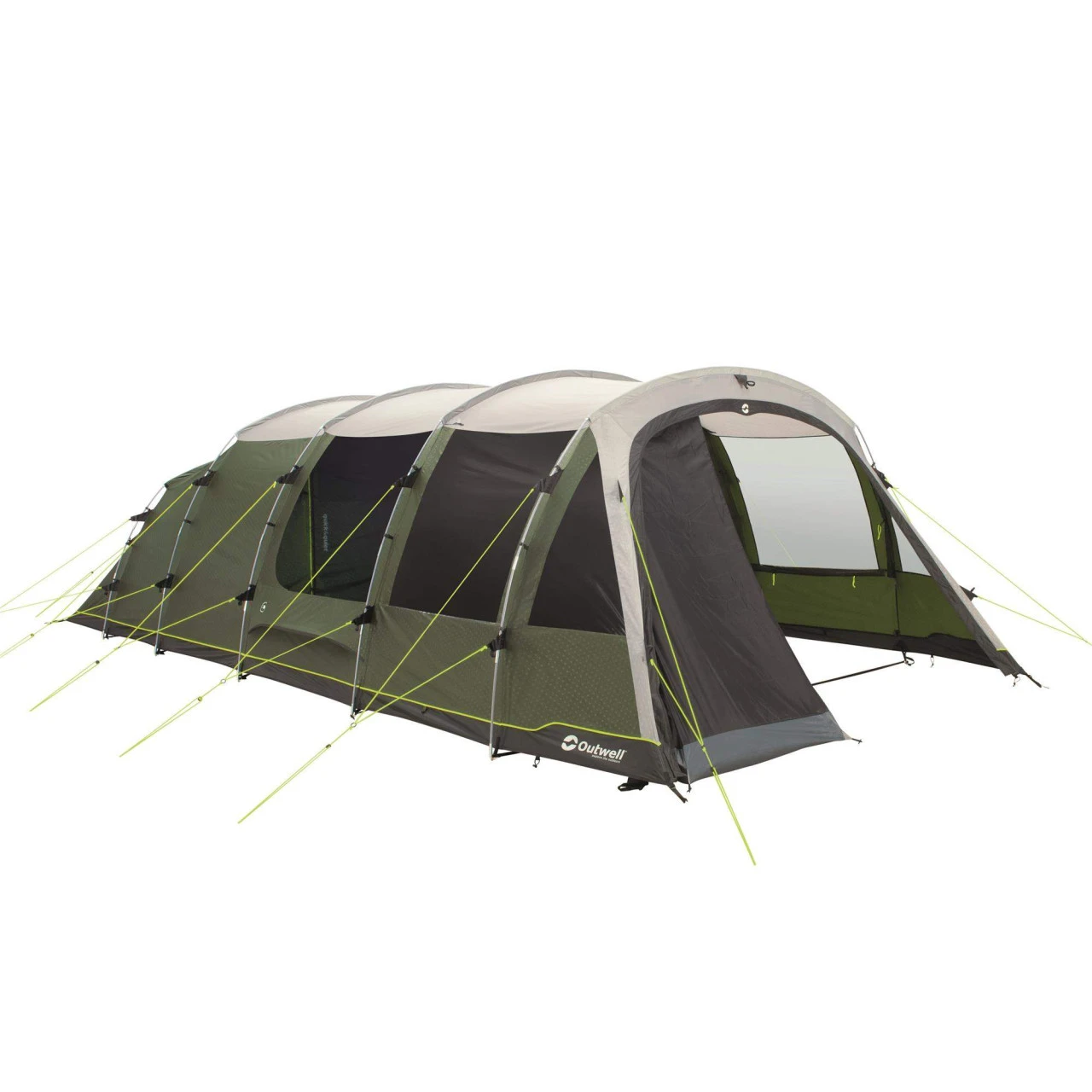 Wenn du für deinen Familienurlaub ein Zelt mit einem sehr großen Platzangebot suchst, bist du bei dem Outwell Winwood 8 Familienzelt genau richtig. Es bietet Platz für bis zu 8 Personen. Das Zelt ist in 3 Zonen aufgeteilt: den Wohnbereich, den sogenannten Nassbereich und den Schlafbereich. Der Eingangsbereich des Zeltes hat keine eingenähte Bodenwanne und wird daher auch Nassbereich genannt, denn hier kannst du bei schlechtem Wetter nasse Ausrüstung geschützt lagern, ohne das Zelt dreckig oder nass zu machen. Die optional erhältliche Bodenschutzplane ist so lang, dass der Eingangsbereich mit ausgelegt wird und du dir so deinen Wohnbereich vergrößern kannst. Im Lieferumfang ist für den Nassbereich auch eine extra Innenzelt enthalten, welches entweder als zusätzliche Schlafkabine für 2 Personen oder als Stauraum genutzt werden kann.