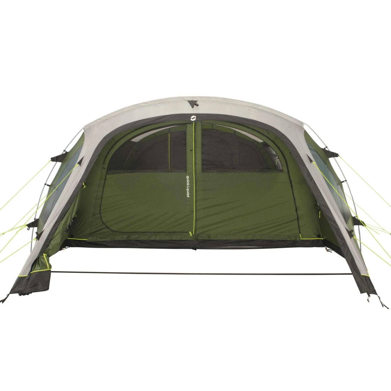 Der Eingang zum Wohnbereich ist mit der patentierten Quick & Quiet Door ausgestattet. Durch den Magnetmechanismus kannst du das Zelt nahezu geräuschlos betreten oder verlassen. Wenn du die Magnetfunktion nicht nutzen willst, kannst du die Tür mit einem doppelten Reißverschluss komplett öffnen. Um dein Winwood 8 komplett zu verschließen, verbindest du die Tür einfach mit der fest eingenähten Bodenplane und schon kommt kein Insekt mehr ins Zelt. An der Seite des Wohnbereichs befindet sich ein zusätzlicher Eingang, der dir noch mehr Flexibilität beim Camping ermöglicht. Das Dach über dem Wohnbereich ist aus einem hellen Material hergestellt und schafft so ein helles, angenehmes Wohnambiente im Zelt. Die großen Fenster an der Seite sind leicht getönt und schützen so vor der direkten Sonneneinstrahlung. Wenn du dich vor neugierigen Blicken der Nachbarn schützen willst, kannst du die Fenster einfach mit Vorhängen verschließen.
