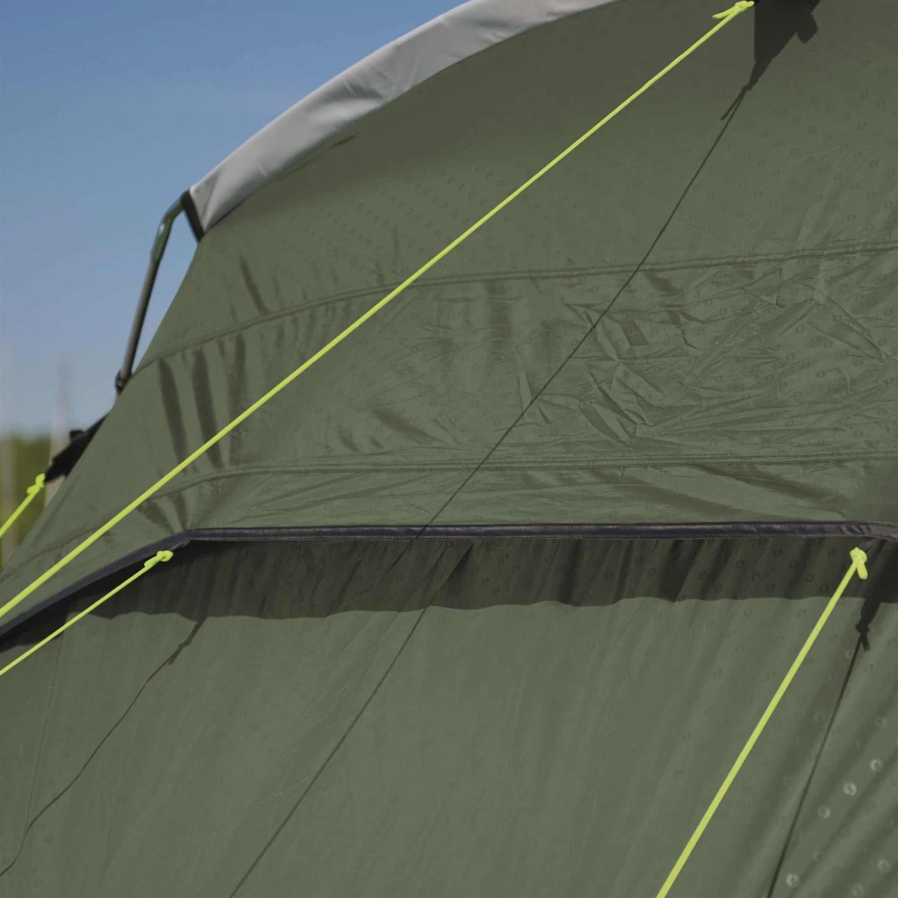 Die große Premium Schlafkabine ist auch mit einer Quick & Quiet Door ausgestattet, so dass du nachts beim zu Bett gehen keinen Mitcamper weckst. Du kannst den Zugang aber auch wie eine herkömmliche Zelt Tür nutzen und Insektensicher mit einem Reißverschluss verschließen. Wenn du mit deiner Familie oder Freunden unterwegs bist, kannst du die Schlafkabine durch 2 Reißverschlussvorhänge in 2 oder 3 Kabinen unterteilen. Da die Schlafkabine aus einem dunklen Material gefertigt ist, scheinen nicht direkt die ersten Sonnenstrahlen ins Innenzelt und das sorgt für einen höheren Schlafkomfort.