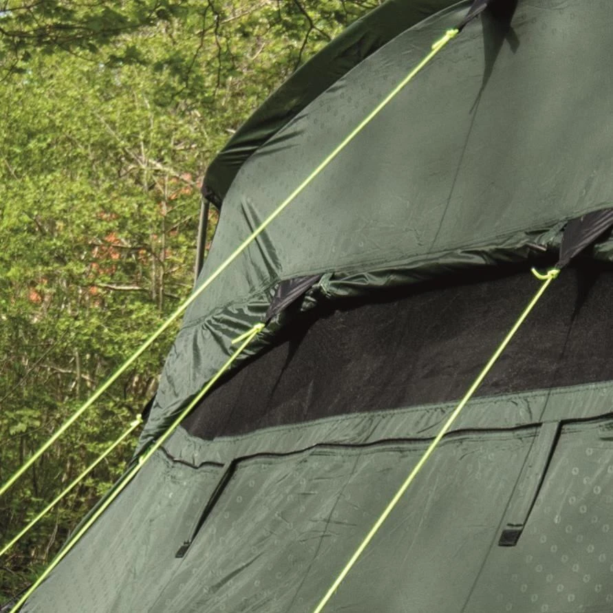 Wichtig für einen angenehmen Urlaub im Zelt ist die Belüftung. Das Winwood 8 bietet hier ideale Lösungen. Neben dem Low Ventilation System im Wohnraum gibt es an der Zeltrückseite noch das Rear Ventilation System. Das spezielle Belüftungsdesign lässt eine individuelle Einstellung des Luftzuflusses zu, so dass du für alle Wettersituationen die perfekte Belüftung hast. Die oberen Bereiche der Innentüren sind mit Moskitonetz ausgestattet und können zur optimalen Belüftung auch geöffnet werden.
