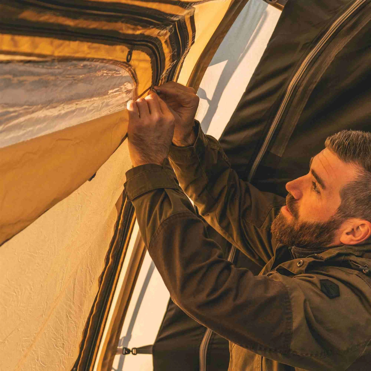 - Integrierte Aufhängepunkte im ganzen Zelt zum Aufhängen von Leuchten