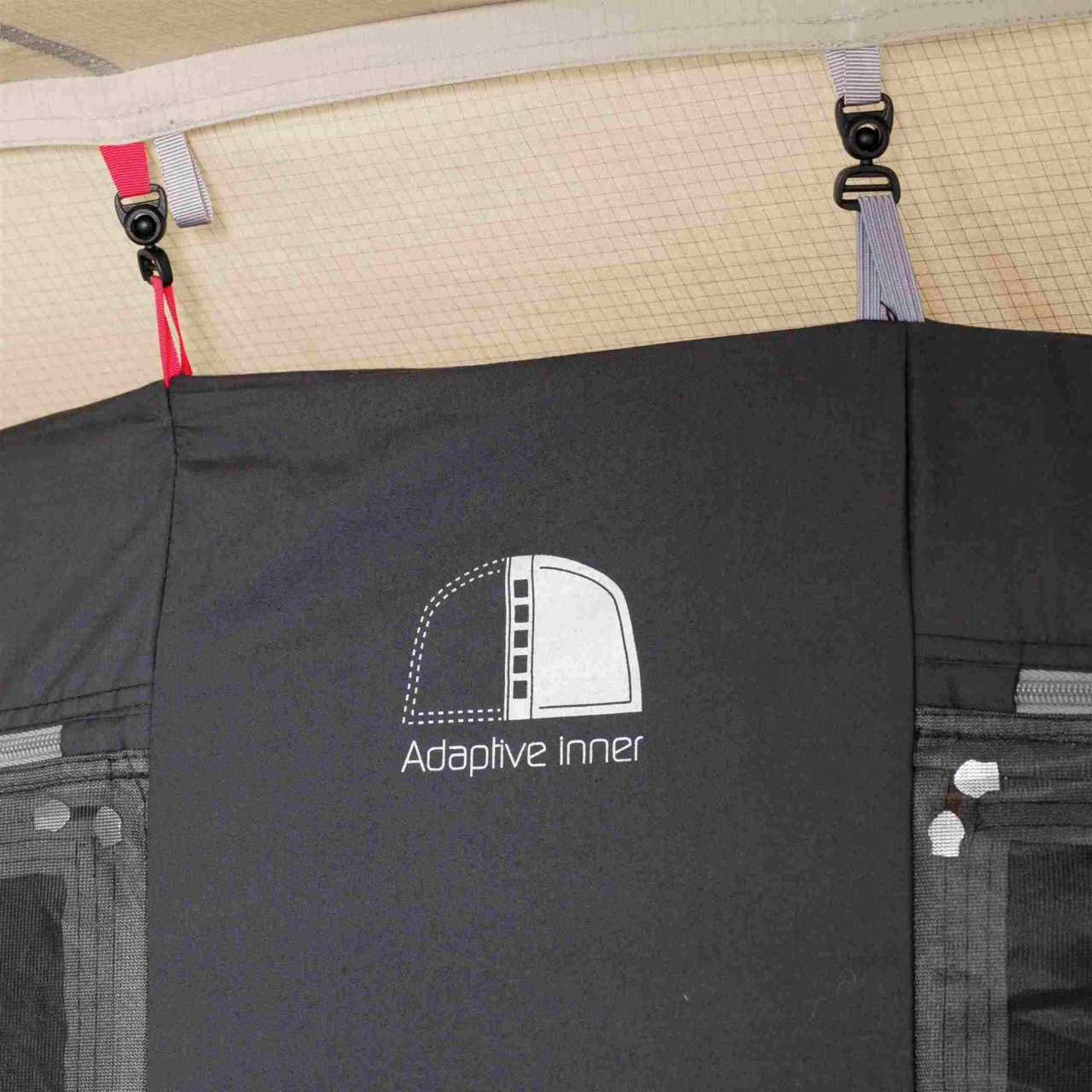 - Halbseitig wegrollbares Innenzelt schafft zusätzlichen Stauraum