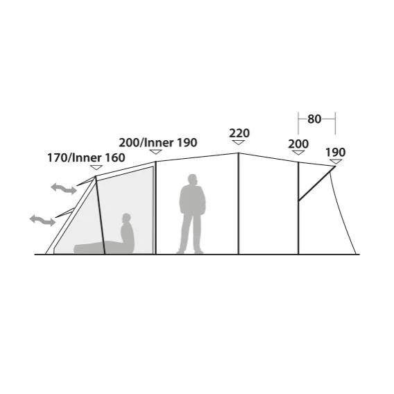 Um im Eagle Rock 5XP die bestmögliche Platzausnutzung zu gewährleisten, wurden vorgebogenen, stabile – aber leichte – Aluminiumstangen verwendet. Das hochwertige HydroTex HD Material und die getapten Nähte sorgen für eine Wassersäule von 5.000 mm und somit für ein absolut wasserdichtes Zelt. Der fest eingenähte Boden hält deinen Wohnraum sauber und trocken. Damit ihr nachts optimal schlafen könnt, ist das Innenzelt aus atmungsaktivem, abgedunkeltem Material hergestellt. Der dunkle Himmel kann abgenommen werden und dann kommt ein Mesh-Einsatz zum Vorschein, der die Luft noch besser zirkulieren lässt.