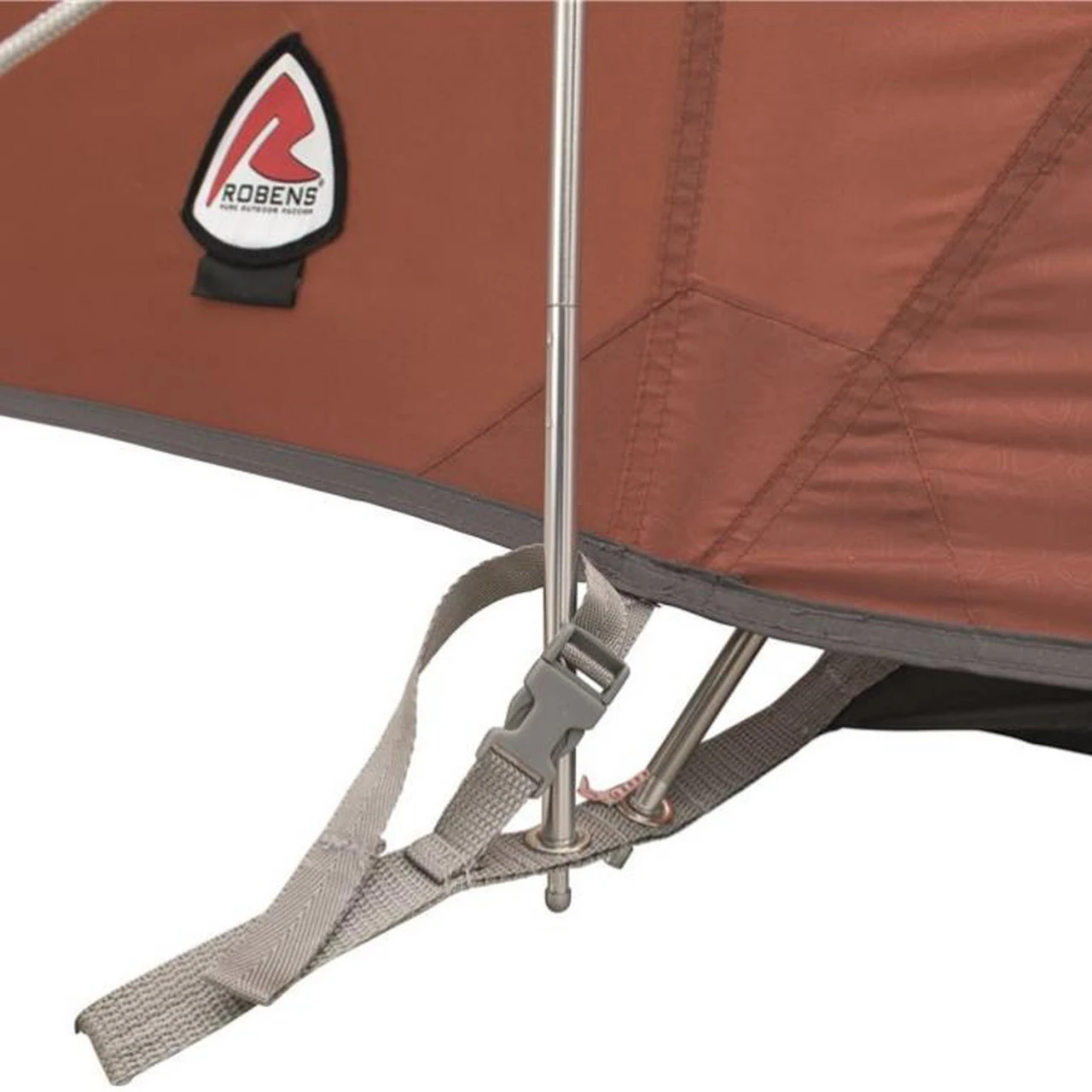 Der Eingangsbereich des Tor 3 Trekkingzeltes von Robens lässt sich, je nach Wetterlage, flexibel gestalten. So die Fronttür geöffnet werden oder ihr entscheidet euch dazu, die Seitenwände wegzurollen und zwei Seiteneingänge zu schaffen.