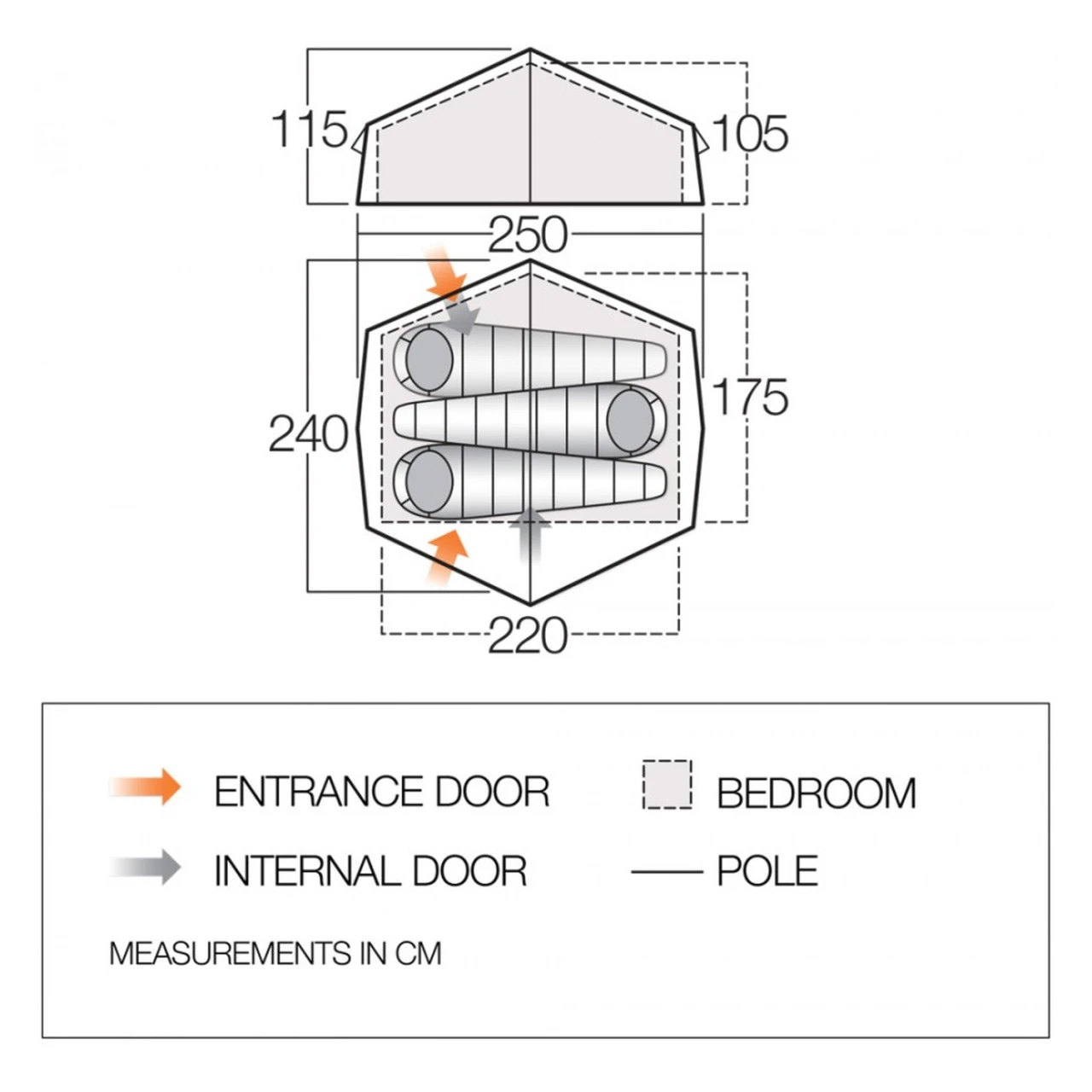 - Alle Nähte des Außenzeltes und des Bodens sind werkseitig verschweißt