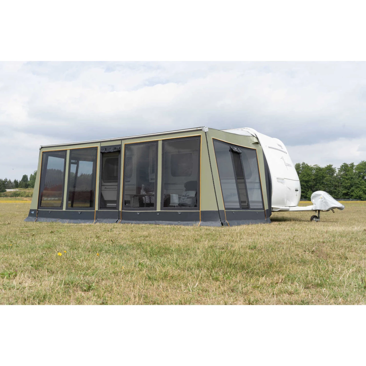 Das Wigo Rolli Plus Modul Moos Vorzelt steht für modernes Design in drei unterschiedlichen Varianten. Durch Das Mix & Match System hast du ein einfaches und schnelles Handling und kannst dein Vorzelt beliebig aufstellen. Die Module kannst du einzeln bestellen und kombinieren. Das Dach des Rolli Plus Modul Moos Vorzelt besteht aus vollsynthetischem TenCate All-Season Material, was einseitig beschichtet ist. Die Unterseite ist bedruckt und reduziert dadurch Schwitzwasserbildung. Die Vorder- und Seitenwände kannst du entweder zur Veranda abklappen oder komplett rausnehmen, sodass du nur noch ein Sonnendach hast. Das Rolli Plus Modul Moos ist der perfekte Begleiter in deinem Campingurlaub!