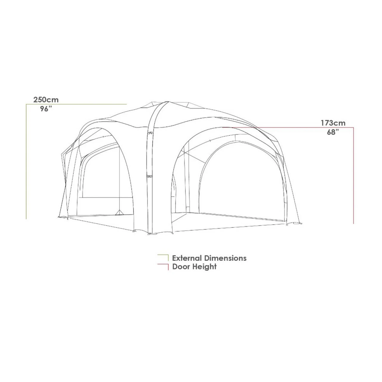 Der aufblasbare Zempire Aerobase 3 Pavillon inkl. 1 Wand lässt sich in wenigen Minuten aufbauen und noch schneller zusammenpacken. Der Rahmen aus Luft- und Fiberglasgestänge ist windstabil und die durchdachte Konstuktion der Außenhülle verhindert das Risiko von gebrochenen Stangen. Die Größe von 3,5 x 3,5 m ist die beliebteste Version des Aerobase, das ein ausgewogenes Verhältnis zwischen einem großen schattigen Bereich und einem geringen Gewicht und Packmaß bietet. Der Zempire Aerobase 3 Pavillon lässt sich auch gut mit den Zelten der Evo-Serie kombinieren, wenn ein Zempire Evo Link verwendet wird. Durch obere Belüftungsöffnungen entweicht feuchtwarme Luft und sorgt somit für ein angenehmes Klima.