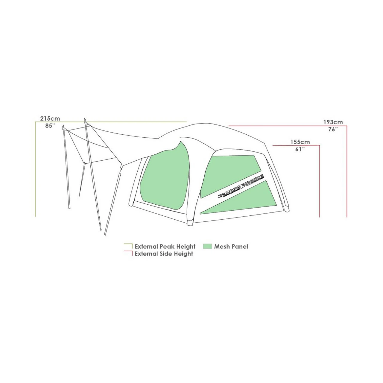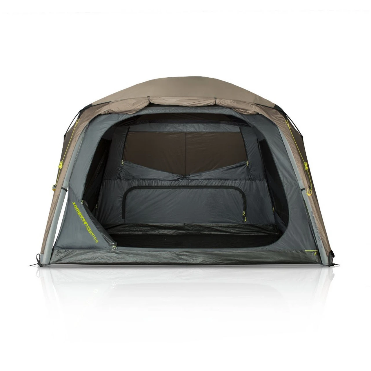 Das Zempire Pronto 5 V2 Familienzelt ist der Inbegriff von Mobilität und Benutzerfreundlichkeit. Dank des aufblasbaren Gestänges lässt sich das Zelt in wenigen Minuten aufbauen, und die mitgelieferten Stirnstangen maximieren das Innenvolumen. Das Innendach besteht vollständig aus Mesh, wodurch die warme Luft entweichen kann und die Kondensation minimiert wird. Wenn das Wetter es zulässt, können Sie das Außenzelt abnehmen, die seitlichen Innenfenster mit einem Reißverschluss verschließen und den Blick auf die Sterne genießen. Das Zempire Pronto 5 Familienzelt verfügt über Innenliegenden Fensterabdeckungen, die dir das Öffnen und Schließen der Fenster im Inneren des Zeltes ermöglichen. Das ultimative Belüftungssystem, das in wärmeren Klimazonen für maximale Belüftung sorgt. Die regensicheren Seitenwände verhindern an nassen Tagen windgetriebenen Regen, lassen aber dennoch die warme Luft entweichen und verhindern so Kondensation und unangenehme Feuchtigkeit.
